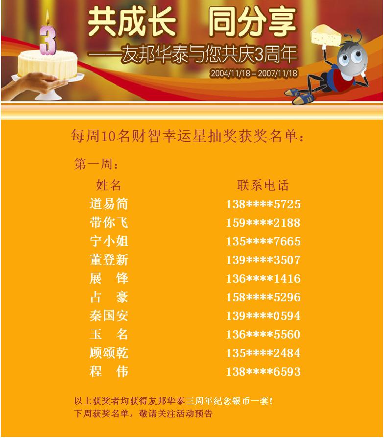 友邦華泰三周年慶征文活動(dòng)第一周獲獎(jiǎng)名單