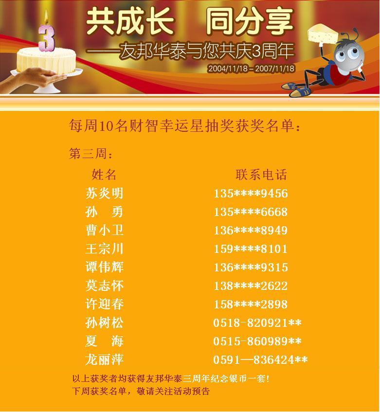 友邦華泰三周年慶征文活動第三周獲獎名單