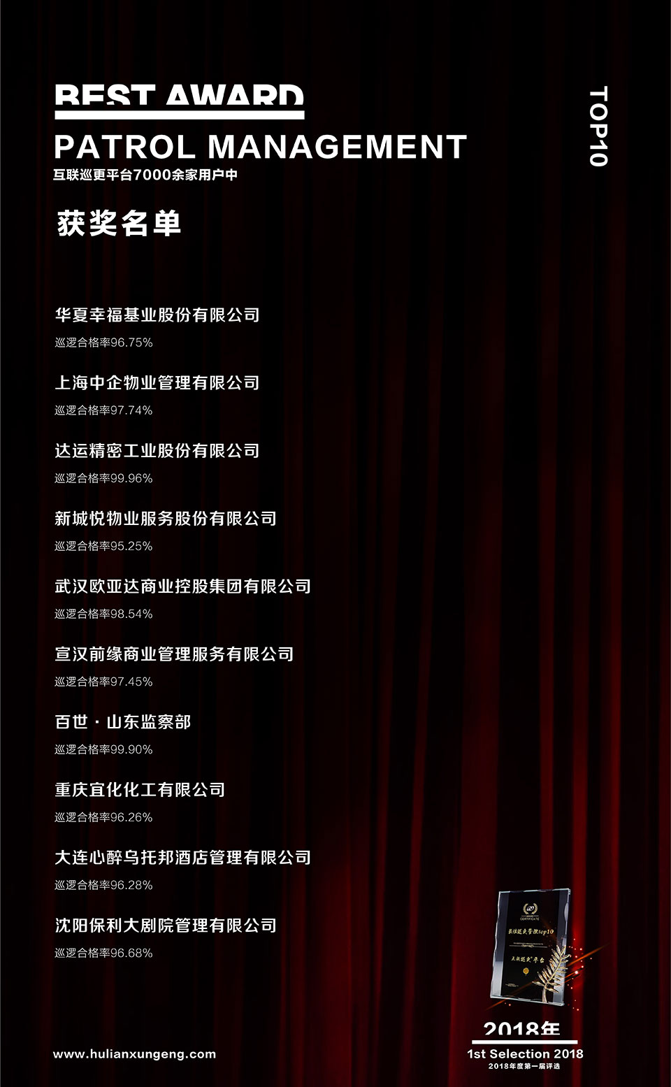 2018年度最佳巡更管理TOP10名單